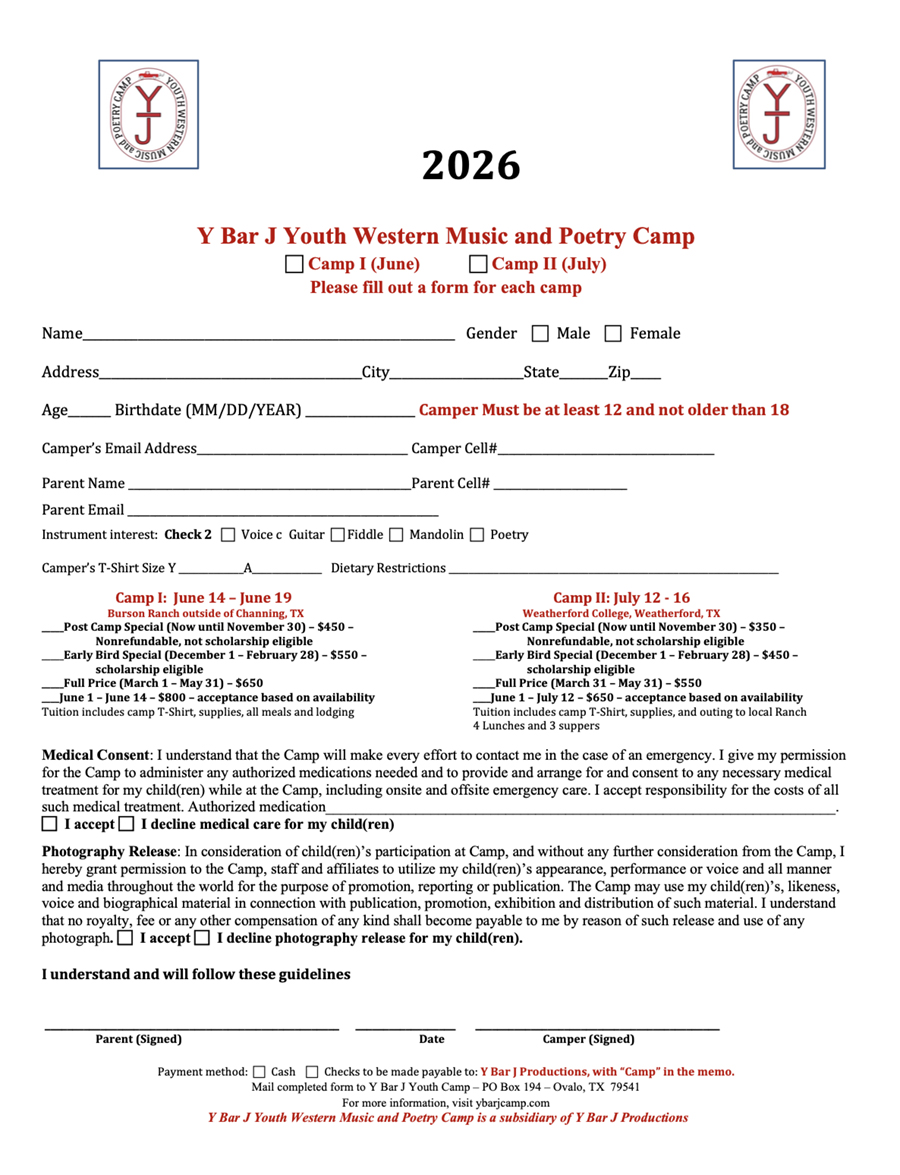 - Send check (payable to Y – J Camp) to: